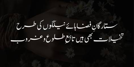 Iqbal farmate hain ke insani soch aur khayalat bhi neele asman ke sitaron ki manind hote hain. Jis tarah sitare tulu hote hain aur phir doob jate hain, isi tarah insan ke tasawurat aur khayalat bhi waqt ke sath paida hote hain aur khatam ho jate hain. Insani soch mustaqil nahi hai balkay kainat ke taghayur-o-tabaddul ke usoolon ke tabay hai.