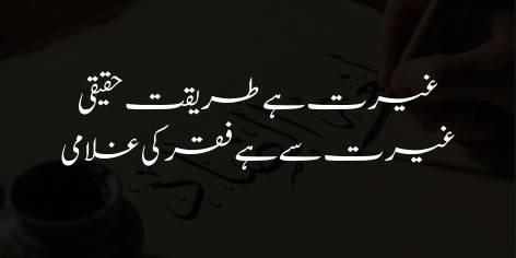 Jo shakhs is ghairat mand faqr ko hasil kar leta hai, woh baghair talwar aur hathiyar ke bhi haq ki jang jeet leta hai, kyun ke us ki quwwat kirdar aur yaqeen mein hoti hai.