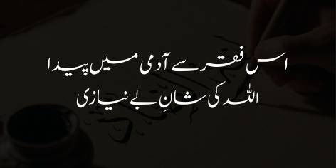 Yahi faqr insan ko Allah ki be-niyazi ki sifat se roshan karta hai aur usey duniya ki ghulami se azad kar deta hai.