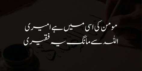 Iqbal ke nazdeek momin ki asal amiri yahi faqr hai, is liye Allah se isi faqeeri ki dua karni chahiye.